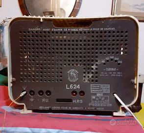 Radio DUCRETET-THOMSON (Francia) Mod. L624, OM-OL-OC1-OC2. Funzionante, provata in OM con ritrasmettitore FM-OM. Dimens.: largh. cm 32, alt. cm 24, prof. cm 17.