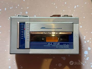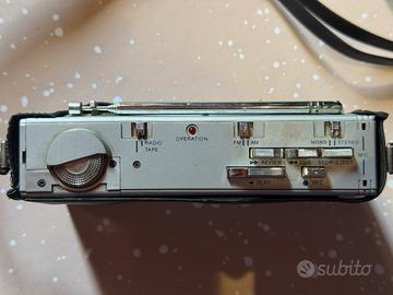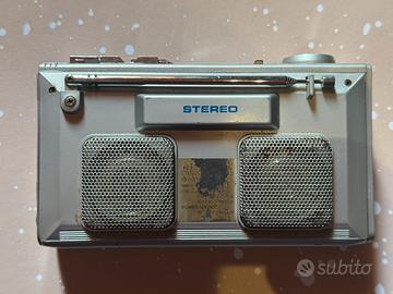 Radio e mangiacassette portatile vintage, completa di tracolla per il trasporto. Antenna allungabile. Ottime condizioni estetiche.