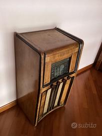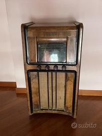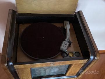 Radio epoca CGE a valvole con giradischi In mobile in radica di noce.