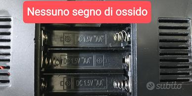 Funzionamento con 3 batterie da 1,5V tipo AA), non comprese, dimensioni 18x10x7 cm. circa.