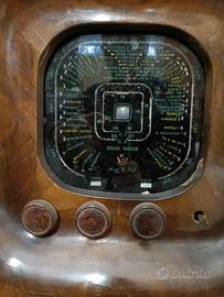 Radio d'epoca, funzionante sia in ricezione, con occhio magico funzionante, sia come giradischi. Il mobile, anche se in buone condizioni, necessita di restauro