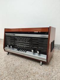 Radio giradischi con Onde Corte, Medie, Modulazione di Frequenza e audio TV. MF da 84 a 104 MHz. Può ricevere anche l'audio di tutti i canali televisivi VHF da A ad H.