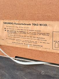 Radio giradischi marca Grundig Konzertshrank 7063W/3D del 1956. Mobile con qualche segno del tempo ma in buone condizioni. Radio funzionante e con un suono prodondo e potente. Il giradischi non è stato testato perche manca la puntina. Luci funzionanti. Misure L 72 X H 85 X P 40. Non spedisco. Ritirabile a mano in provincia di Firenze.