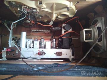 Radio giradischi SBR rp6 anno 1958 sistemato e funzionante. La testina originale ruotante disponeva di due puntine, una grossa per dischi a 78 giri e una per dischi microsolco: l'ho sostituita con testina piezoelettrica nuova moderna (non funziona coi 78 giri)