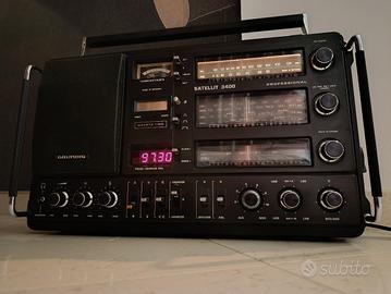 Grundig Satellit 3400 Professional ricevitore mondiale made in Germany. Versione scocca nera. Proveniente da mia collezione privata. Ottima radio, dal suono potente e dalla ricezione spettacolare. Modello sempre più arduo da reperire in queste condizioni. Chi conosce questi dispositivi sa benissimo che realizzare OGGI un simile modello richiederebbe competenze tecniche avanzate e costi impressionanti.