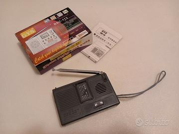 Radiolina con sintonia digitale GYS modello BBC-113, produzione cinese importata in Italia inizio anni 2000, modello non comune, funzionante, antenna estraibile perfetta, vano batterie senza ossido, con scatola originale e astuccio in similpelle a corredo vendo ad Euro 12. La radio è stata testata in FM e funziona egregiamente, sulle bande AM ed onde corte si sentono fruscii e rumori di fondo, ma nessuna stazione in maniera chiara, per cui la garantisco funzionante solo in FM. Adeguato sovra imballo antiurto e spedizione tracciabile a domicilio in tutta Italia ad Euro 7.