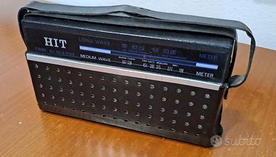 Vintage, Radio HIT a transistor Superheterodyne, con custodia. 2 bande MW-LW. Uscita cuffia. Funzionamento con 4 batterie a stilo AA. NON funzionante.