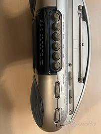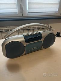 Radio irradio stereo portatile con radio cassette recorder, funzionante in ottime condizioni, con possibilità di lettura cassette, banda AM e FM, con possibilità di alimentazione via cavo e batteria, con aggiunta di possibilità di ascolto via cavo tramite jack.