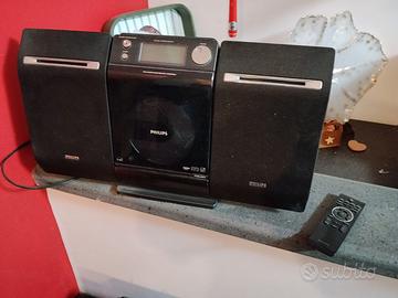 Radio Lettore CD Philips MCM277. Con telecomando, porta USB per MP3 e Casse staccabili per un posizionamento personalizzato. Console dei comandi locali a scomparsa.