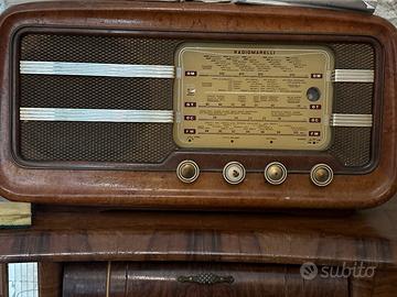 Radio d’epoca Marelli + mobile con 3 scomparti e giradischi Telefunkern incorporato
