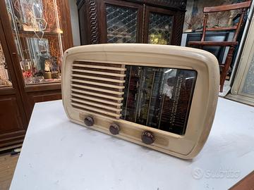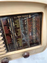 Vendo Radio Minerva anni 50 modello 505/2. Ha una struttura in legno con un frontale in bachelite,