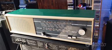 Vendo bellissima radio d'epoca Mivar modello R 40 a transistor, un vero pezzo di storia del design industriale italiano prodotto tra la fine degli anni '60 e l'inizio dei '70. L'oggetto si presenta in condizioni estetiche ottime, presenti solo leggeri segni del tempo ( visibili in foto) : la scocca nel caratteristico colore verde bosco è lucida e ben conservata, la scala parlante è perfettamente nitida e le manopole sono originali. Caratteristiche principali: Modello: Mivar R 40 Ricezione: Due bande, FM e Onde Medie (OM). Stile: Design minimalista "Space Age", ideale come complemento d'arredo per case moderne o uffici vintage. Stato: Mobile e plastiche integre, senza crepe o graffi profondi. Dimensioni: 44 cm (L) x 12 cm (P) x 12 cm (A) La radio è stata controllata e pulita ed è perfettamente funzionante, cavo antenna incluso. Consegna: Disponibile per ritiro a mano o spedizione tracciata con imballo professionale Disponibile a prova di ascolto.