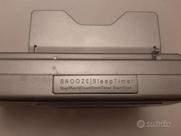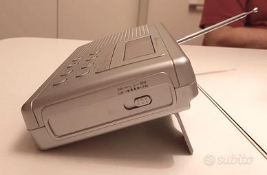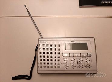 Radio portatile a batteria per frequenze FM, AM e onde lunghe, colore argento, funzione radiosveglia, con manuale di istruzioni e alimentatore