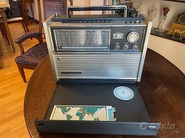 Radio vintage fine anni '60 primi '70 funzionante. Peso circa 10 Kg. Unici problemi: la lampadina scala è bruciata all'antenna di destra mancano dei segmenti.