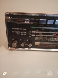 ricevitore mondiale Nordmende globetrotter TN6000, esteticamente molto bello, ma mancante di maniglia, l'antenna è presente ma sfilandola si stacca dalla radio, non è presente il cavo di alimentazione e quindi non è stata testata, perciò viene venduta come NON funzionante per restauro o per pezzi di ricambio