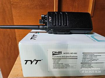 Vendo bellissima radio portatile TYT MD 680 DMR analogica e digitale, usata praticamente niente pertanto la batteria è come nuova. La radio è una VHF. La radio è in condizioni da vetrina, perfettamente funzionante, mai caduta e non ha mai visto acqua o neve. La vendo con la sua scatola e gli imballi originali.