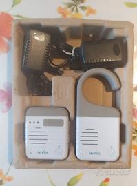 Vendo radio ricetrasmittente "NUVITA" usato 3-4 volte composto da un trasmettitore e un ricevitore come da foto, per controllare bambini o anziani durante il sonno. L'apparecchio trasmittente è anche dotato di un gancio per poterlo appendere dove si desidera.