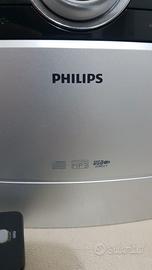 Stereo radio philips con lettore cd,mp3 , usb con radio fm antenna e telecomando. Perfetto e compatto , larghezza circa 15 cm e altezza 20 cm circa.