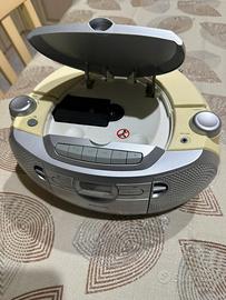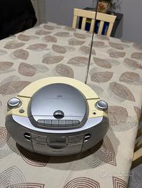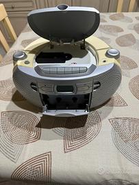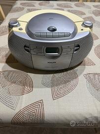Radio Philips AZ1027/12 con cd e mangianastri, testata e perfettamente funzionate. Dimensioni circa: base 30x25, altezza 15. Secondo Philips riproduce CD, CD-R e CD-RW. Dati del produttore: Potenza in uscita 2 x 1 W RMS Funzioni audio avanzate Dynamic Bass Boost Controllo del volume rotatorio (analogico) Impianto audio stereo. Manca lo scatolo