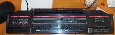 il mio primo radione, 1988 circa, lo usai 2 anni per poi sostituirlo con l altro Philips sempre Qui inserito: conservato meglio, é ripartito in toto una volta collegato alla corrente: gli altoparlanti paiono funzionare bene, così come le 2 levette, qui separate, che controllano il volume (rendendo così più facile fare la comparazione delle casse nei 2 lati; radio funzionante, antenna telescopica presente ed intatta, non mi é possibile "collaudare" i 2 deck cassette, poiché non ho più... cassette!