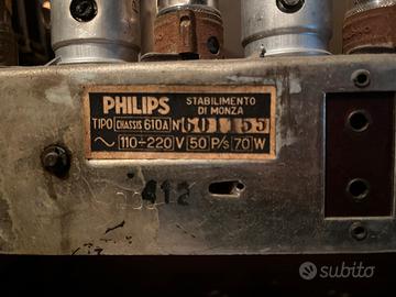 Vendo Radio Philips valvolare funzionante. La radio presenta segno di usura, la rete altoparlate danneggiata e le manopole da sistemare…nel complesso è in buono stato. E funzionante. No spedizione