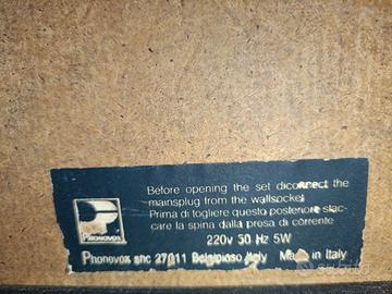rara radio vintage originale Phonovox (prodotta a Belgioioso, PV). Modello in legno massello con finiture di pregio. Si tratta di un pezzo originale dell'epoca (anni '70/'80), non una riproduzione moderna. Perfetta per collezionisti o come complemento d'arredo industrial/vintage."Radio vintage Phonovox in finitura mogano.Specifiche indicate sull’etichetta: 200 v, 50 Hz, 5 W. Design classico in legno, griglia altoparlante e manopole originali. Condizioni: usato — funzionante Ideale per collezionisti e per arredamento retro. Lievi segni del tempo (piccole ammaccature), coerenti con l’età dell’articolo. Estetica complessiva molto gradevole #vintage #radio #phonovox #mogano #collezionismo #anni50 #anni60 #designvintage #vintedItalia