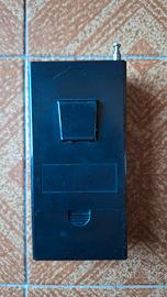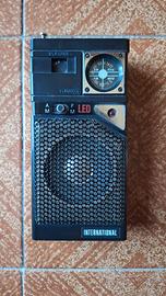 Radio portatile AM/FM vintage, di marca INTERNATIONAL (anni ’70-’90). Strumento NON funzionante (dovrebbe funzionare con 3 pile AA). Manopola del volume, accensione e spegnimento, manopola tuning per la sintonizzazione, selettore AM/FM. In plastica nera. Design elegante. Misure: 7x14x3cm. Prezzo trattabile