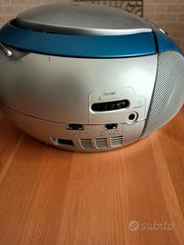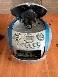 Radio e lettore CD MP3 perfettamente funzionanti, mangiacassette difettoso. Alimentatore incluso.