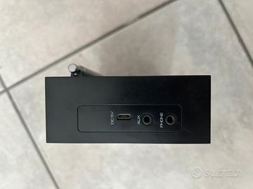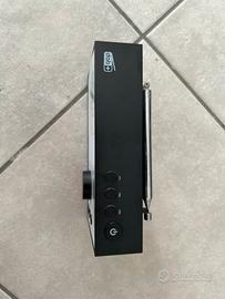 Batteria Ricaricabile al litio integrata. Ingresso audio aux-in Sveglia con due allarmi e tre suonerie. Prodotto usato due/tre volte, come nuovo.