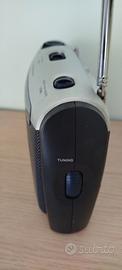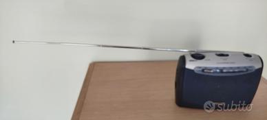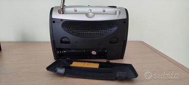 Radio portatile funzionante. Funziona a batterie (non incluse) oppure a corrente elettrica ma non c'è il cavo di alimentazione.