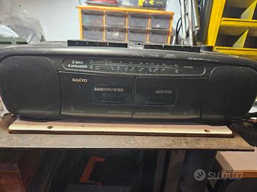 Vendo radio Sanyo la radio funziona bene e le cassette girano entrambe,alimentazione sia a batterie che con cavo di alimentazione compreso,l'antenna e' stata sostituita perche'era rotta,spedizione disponibile con subito.