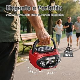 【Doppia Alimentazione】Non lasciare che una batteria scarica rovini il divertimento. La nostra radio ricaricabile offre due pratici modi per rimanere alimentata: una batteria integrata da 1800 mAh con ricarica USB-C moderna e l'energia solare ecologica. A casa, durante un picnic, in campeggio o in caso di blackout, garantisce un'alimentazione affidabile per non interrompere mai musica e notizie.
