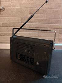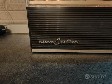 Vendo radio portatile Sanyo Cantino originale di fine anni ’60 / primi anni ’70. Modello AM/FM a transistor con antenna telescopica integra e maniglia originale. Le manopole girano correttamente, il selettore e l’accensione fanno lo scatto regolare.