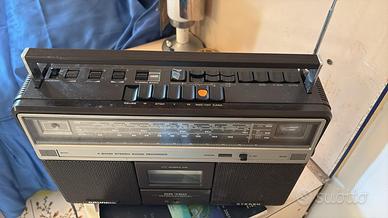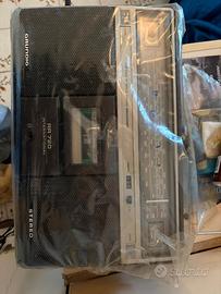 Vendo iconico Boombox / Radio Registratore Stereo GRUNDIG modello RR 720 International, un vero classico degli anni '80. L'apparecchio è a 4 bande (LW, MW, SW, FM), dotato di antenna telescopica integra, doppio microfono integrato e vano posteriore a scomparsa con i trimmer per la preselezione delle stazioni radio (tipica qualità costruttiva Grundig dell'epoca). Condizioni Estetiche: Buone e solido. Segnalo, per massima trasparenza, la presenza di nastro adesivo su uno dei tasti selettori superiori (come da foto) e i normali segni del tempo. Viene fornito con il suo cavo di alimentazione originale. Condizioni Tecniche: L'oggetto viene venduto come "DA TESTARE / DA REVISIONARE". Non è stato provato di recente. Ideale per appassionati di hi-fi vintage, riparatori o come splendido pezzo da esposizione/arredamento retrò. L'apparecchio è stato conservato per anni avvolto in una copertura protettiva per ripararlo dalla polvere e dall'umidità (come visibile in una delle foto). Includo in omaggio anche la musicassetta vintage presente all'interno del vano. Disponibile esclusivamente per ritiro e scambio a mano. Pagamento al momento della consegna. Contattatemi per qualsiasi informazione