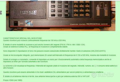 Radio Ricevitore Digitale MultiBanda Vintage In Discrete Condizioni - 1988 / 1989 Ricevitore Professionale Multibanda Made in Japan Computer Control Communication Receiver MARC NR-108F 1 Supereterodina a doppia / tripla conversione ZF / IF 65000 / 10700 / 455 kHz 1 Stadio BF Sintonia Continua 0,15 / 520 Mhz Impostazione Diretta Frequenza da Tastiera Scansione Frequenze in Manuale con Volantino Scansione Frequenze in Automatica con Step Programmabili Non si Sentono le Stazioni - Audio Muto Peso 2 Kg circa