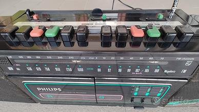 Radio funzionante, all'antenna manca la punta ma cmq funzionante, purtroppo funziona solo la riproduzione cassette sulla piastra A, non funzionano REW e FFW e non si può quindi registrare o duplicare le cassette.