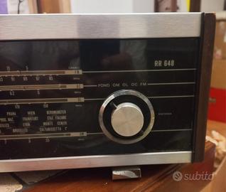 radio vintage completa di tutti i suoi componenti. non so se funzioni perché non l'ho provata . vendo come oggetto d'arredo vintage con la formula visto e piaciuto. il prezzo è determinato dal difetto nella parte anteriore come da foto