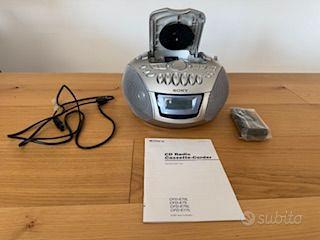 Radio Sony CDF-E77L - RADIO AM FM/CD/CASSETTE completa di telecomando e manuale d'uso. Funzionante con cavo o batterie.