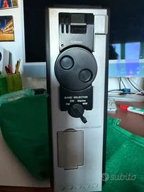 radio vintage Sony ICF-5500M, anche conosciuta come "Captain 55". Identificazione del prodotto: Si tratta di un ricevitore radio portatile Sony ICF-5500M "Captain 55" degli anni '70. Caratteristiche: È un ricevitore FM/AM a 4 bande, inclusa la banda marina (Marine MW). Funzionalità: Dispone di controlli per il volume, i toni (bassi e alti), la sintonizzazione e un misuratore del livello di batteria e VU. Valore: Essendo un modello vintage, è spesso ricercato da collezionisti e appassionati di radio d'epoca