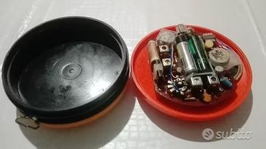 la radio è completa e va a batterie. testata si sente solo in am.colore arancio e rosso