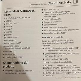Vendo questa radio stereo con dock per iPhone modello vecchio (prima dell’iPhone 5) Funziona come radio sveglia normale e cassa per ascoltare la musica dall’iPhone o iPod collegato tramite l’apposito dock mentre si ricarica. E possibile collegare altri dispositivi tramite l’ingresso aux posteriore. Volendo si può installare un adattatore per collegare i modelli di iPhone più recenti. Vendo insieme a telecomando, cavo per l’alimentazione, manuale e gli adattatori per i vari modelli da applicare al dock.