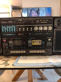 stereo portatile musicassette Lanico L 818E perfettamente funzionante anni 80, doppia cassetta per duplicazione,unico problema l'antenna è leggermente crepata ma facilmente sostituibile.... leggermente trattabile