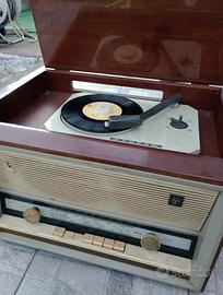 Il Phonola 696 (Gran Derby) è un mobile radio-giradischi anni ’60 dal design elegante in legno. 🔹 Caratteristiche principali •📻 Radio AM/FM (onde medie, corte e FM) •🎶 Giradischi integrato per vinili •🔊 Amplificatore a valvole con suono caldo •🪵 Mobile in legno tipico dell’arredo dell’epoca •🎛️ Comandi a tasti e manopole frontali