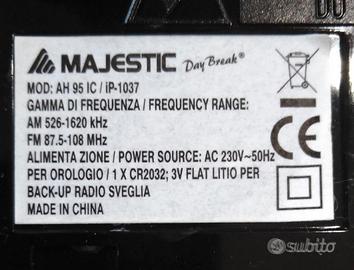 Radio stereo sveglia Majestic con supporto per iPod. Prodotto un po' vintage (anno 2010) ma perfettamente funzionante, in ottime condizioni.