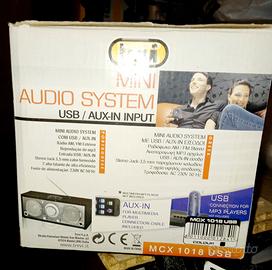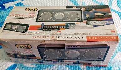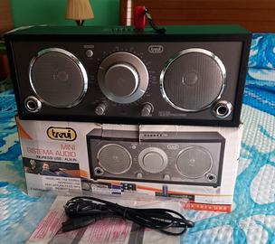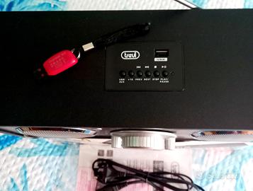 cassa audio trevi, 2 altoparlanti, radio Am, FM , antenna cavo alimentazione USB, JCK AUDIO IN/ OUT misure ca.25x10x8-L A P. € 25.