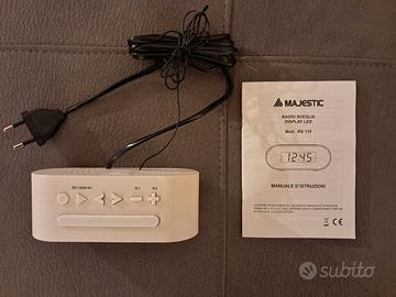 Funzione di radio con sveglia e orologio (lettura diretta a led rossi dell'orario solare), batteria tampone in caso di mancanza di tensione di rete. Istruzioni cartacee in italiano.