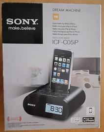 Questa radiosveglia è una base dock con funzioni di ricarica, radio e riproduzione audio da iPhone e touch.Sony C05iP è pratica da utilizzare: una volta collegato il piccolo trasformatore da viaggio incluso, risulta semplice impostare l'ora e le diverse sveglie. L'utente può scegliere di incominciare la giornata con la riproduzione della stazione radio preferita oppure con l'esecuzione dei propri brani preferiti memorizzati nella libreria di iPhone e touch. Per quanto riguarda la radio è possibile memorizzare fino a 20 stazioni con richiamo rapido: la riproduzione audio, dalla radio o dal nostro tascabile, avviene tramite lo speaker mono integrato.Nel lato inferiore è presente un vano facilmente raggiungibile per la batteria tampone: grazie a questa l'avvio della sveglia impostata è assicurato anche quando la corrente elettrica viene a mancare.Completo di libretto d'istruzioni.