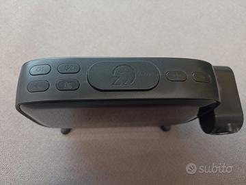 Sveglia da comodino con proiettore dell'ora regolabile a 180°, radio, vari livelli di luminosità,suonerie pre registrare e dotata di cavo di alimentazione.