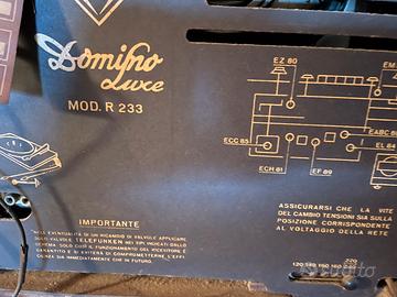 Radio a valvole anni 1950, modello Telefunken Domino Lux mod.233 completa di sntenna originale, parte esterna in legno e ben tenuto con qualche segno del tempo, ma in ottimo stato,