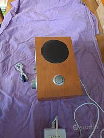 Radio Tivoli Audio Model Three originale in legno, design vintage con orologio e sveglia integrati. Perfettamente funzionante, ottima qualità audio, usata pochissimo e rimasta ferma a lungo. Condizioni estetiche molto buone come da foto. Unico difetto: il contatto dello spinotto dell’alimentazione non è sempre perfetto, a volte bisogna muovere leggermente il cavo per farla accendere. Probabilmente risolvibile facilmente con spray per contatti o una piccola sistemazione. Completa di alimentazione e antenna Consegna a mano tra Udine e zone limitrofe, oppure ci si può accordare tra Veneto e Friuli dato che mi sposto spesso per lavoro. Disponibile anche spedizione a carico dell’acquirente, da concordare a parte.